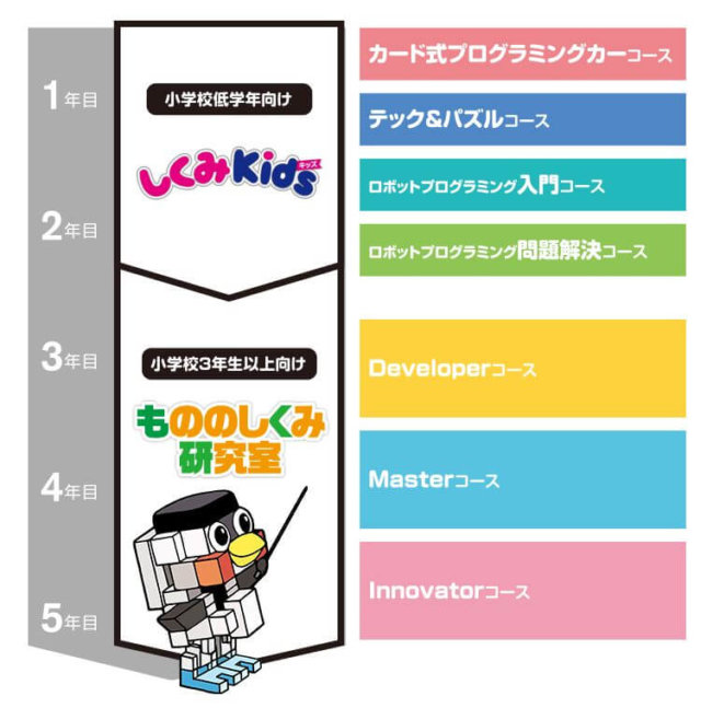 学研のロボットプログラミング講座は、小学校低学年から高学年まで系統立てたカリキュラムになっています。