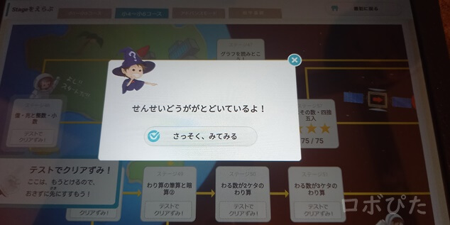 - スモールステップで進めるステージ制(先取り学習可能)